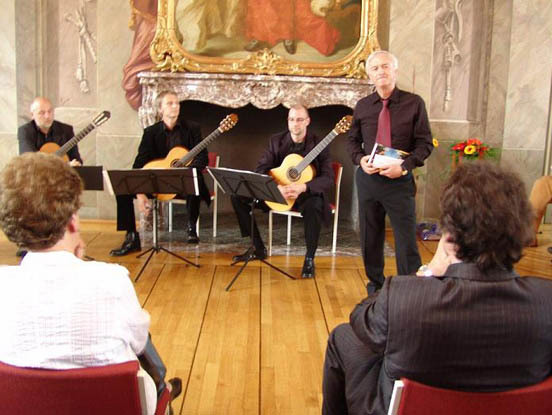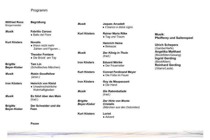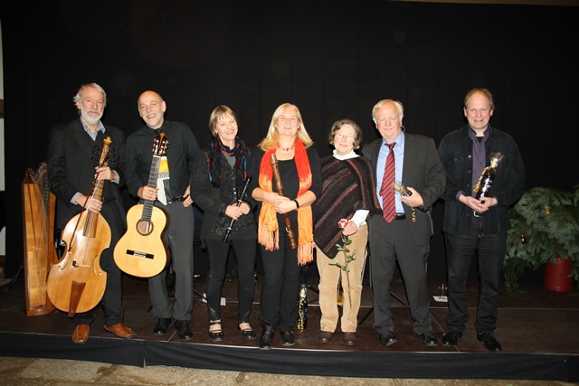 Mit ihren historischen Instrumenten ließen die Musiker beim „Ballo del Fiore“ von Fabritio Caroso die Blumen tanzen. Charmant und absolut textsicher deklamierte Kurt Kösters, wie immer auswendig, Werke von Novalis und Theodor Fontane.